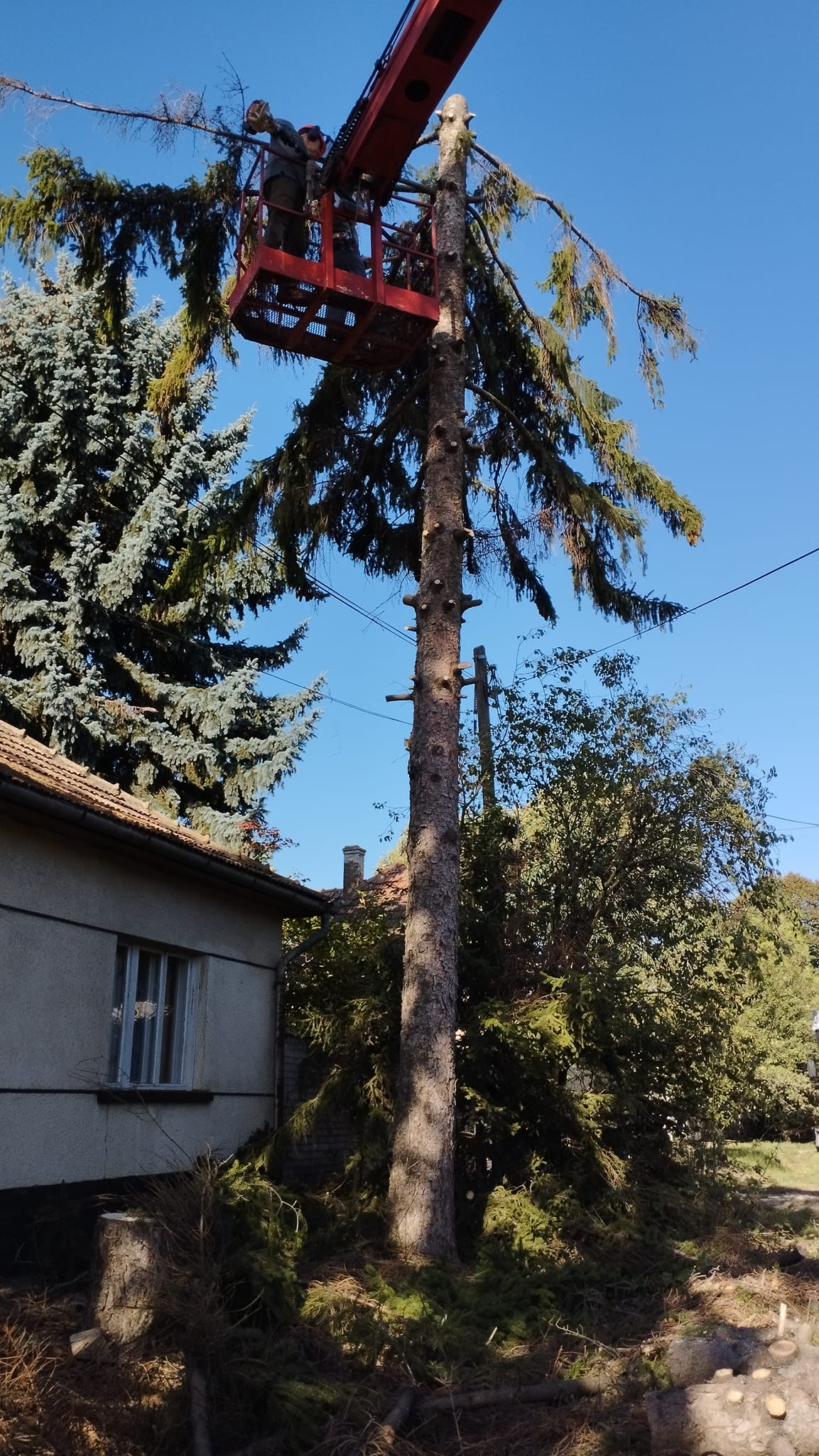 A Városgazda Kft. több napja a közterületen, és az önkormányzati ingatlanok területén található veszélyes fákat nyesi, ha indokolt, akkor kivágja egy vidéki, kosaras autóval rendelkező partner segítségével. A végén pedig tisztán, rendezetten adják át az utcákat a lakosság számára.